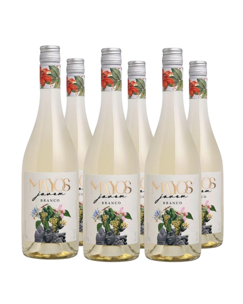O Mayos Jovem Branco é elaborado com uvas Moscato e apresenta coloração amarelo-palha com reflexos esverdeados. No nariz, destaca aromas de pêssego e lichia, com delicadas notas florais. Em boca, é leve, frutado e fresco, com acidez marcante, ideal para consumo jovem e descontraído.